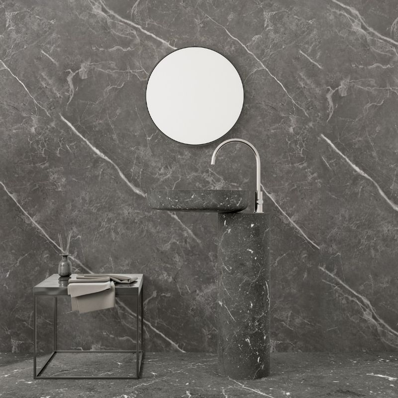 This highly practical shower board is from within the premium collection. The Large Lindos Dark Grey Shower Panel gives you everything you need to make your dream shower, with a matt elegant finish, giving you the look of a marble slab this shower panelling will make your bathroom stand out from the rest.