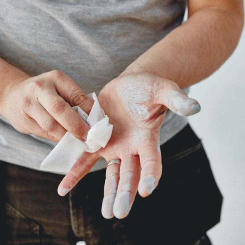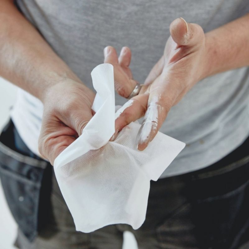 Wonder Wipes are specially formulated for the buildings and allied trades to clean wet and semi-cured paints, silicone, sealants, adhesives, bitumens, polyurethanes, expanding foams, polyester fillers and epoxies from hands, tools and surfaces. Wonder Wipes also easily remove oil, grease, petrol and inks, yet the powerful cleaning agents are still kind to hands, as they contain Aloe Vera to condition skin and prevent dryness and cracking; meaning there is no need to rinse hands after use.