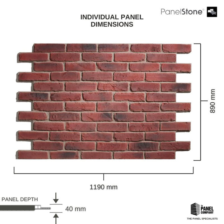 British Brick Aged Red Decorative Wall Paneling - Complete with a real crushed stone construction