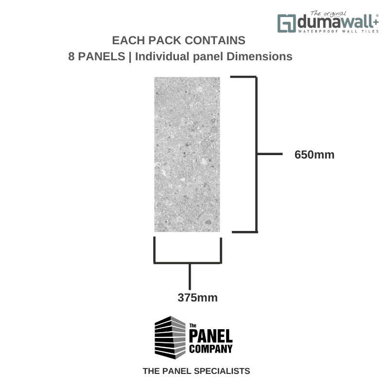 The Ceppo De Gri Dumawall Plus bathroom wall tile panel is a light grey tile effect bathroom wall panel, that will give your bathroom a modern practical interior finish.