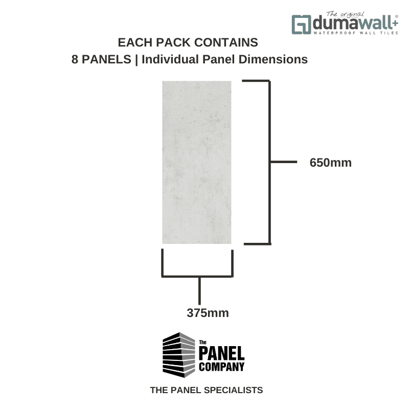 The Light Cement Dumawall Plus bathroom wall tile panel comes in an 8 pack and has a light grey luxe finish. A tile effect bathroom wall panel, this panel will provide a practical sleek interior finish in your home.