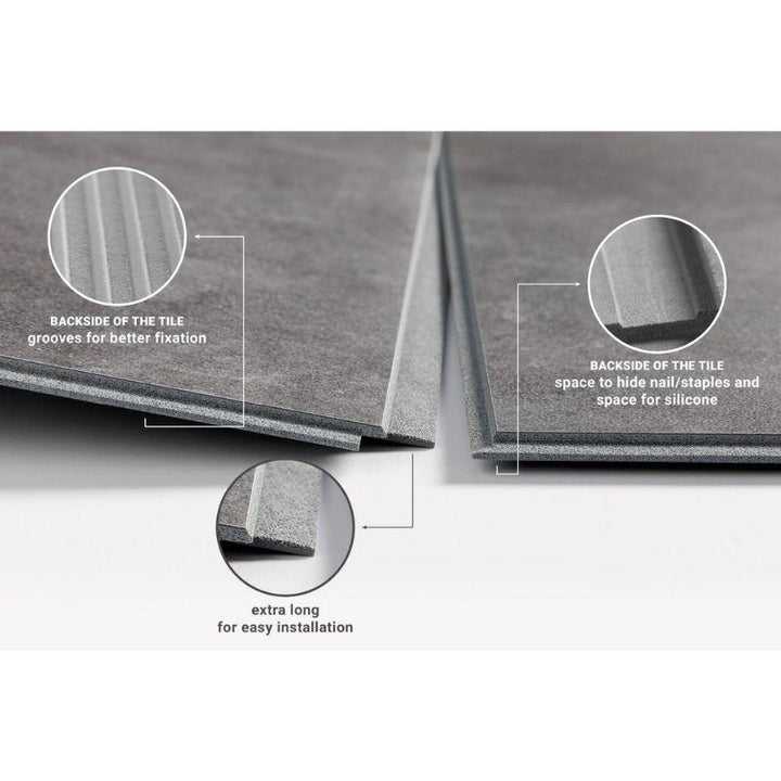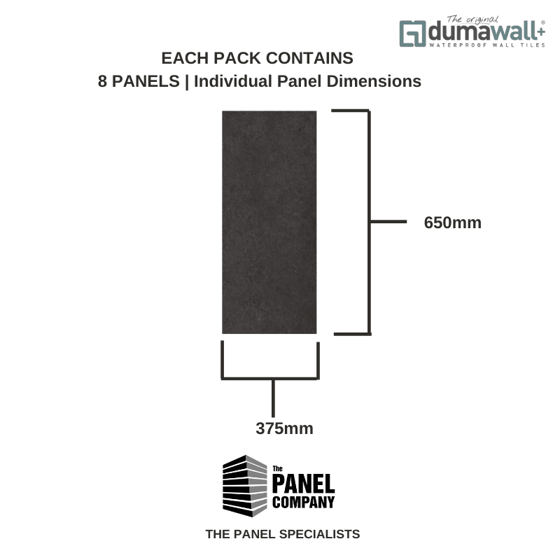 The Nero Dumawall Plus bathroom wall tile panel comes in an 8 pack complete in a dark grey luxe tile finish. This panel will provide a practical sleek interior in your bathroom or kitchen area or any commercial space, these tile panels are the ultimate hygienic alternative to ceramic tiles.
