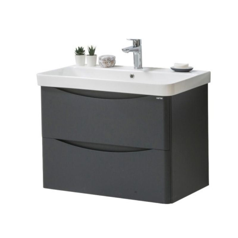- Graphite 800mm Wide Wall Mounted 2 Drawer Unit & Ceramic Basin