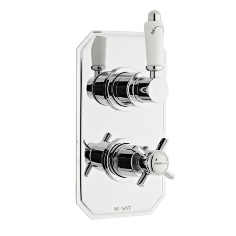 The Kartell Klassique Concealed Thermostatic Shower Valve will add a finishing feature piece to your overall shower area interior. A traditional art deco yet modern style shower valve, with a curved design and traditional lever handle and one cross head handle in a stunning chrome finish.