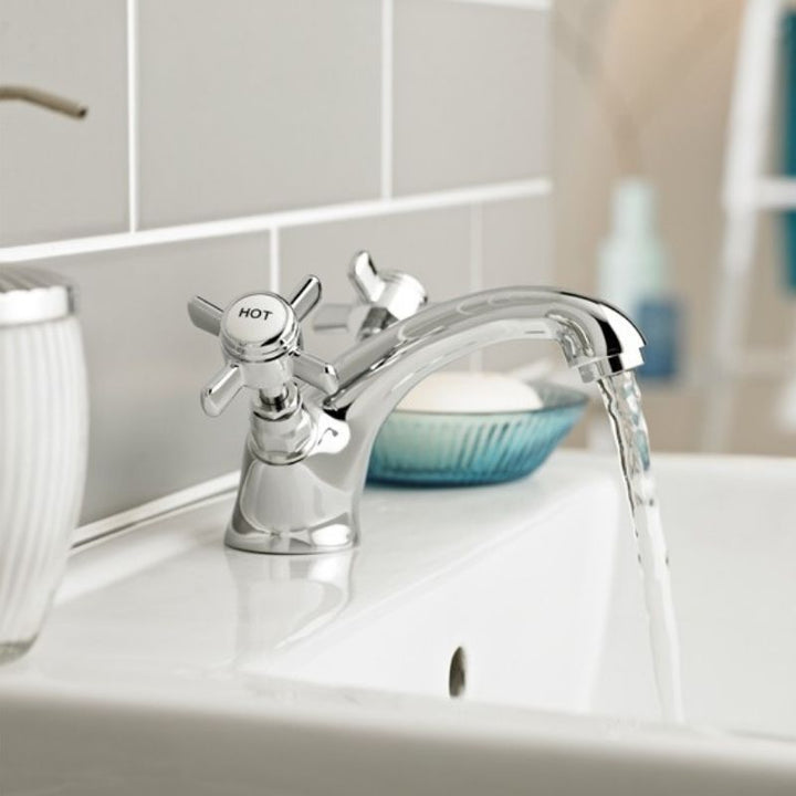The Kartell Klassique Mono Basin Mixer Tap is a traditional art deco yet modern style mixer tap, with a curved design and traditional spinning taps in a stunning chrome finish. Add a feature piece to your overall bathroom interior with this traditional bath tap.