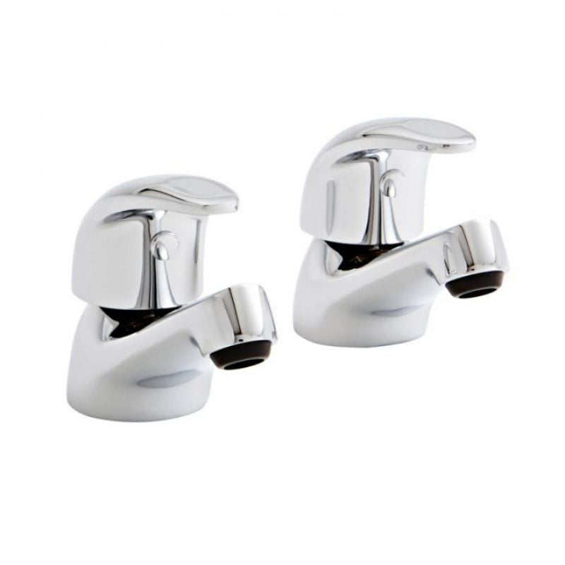 The Kartell Koral Basin Pillar Taps come in a pair, for cold and hot water. In a stunning chrome finish and a curved design. Add a feature piece to your overall bathroom interior with these lever handle basin pillar taps.