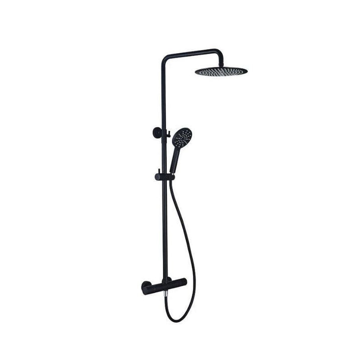 Kartell Nero Round Thermostatic Exposed Bar Shower w/ Overhead Drencher & Sliding Handset