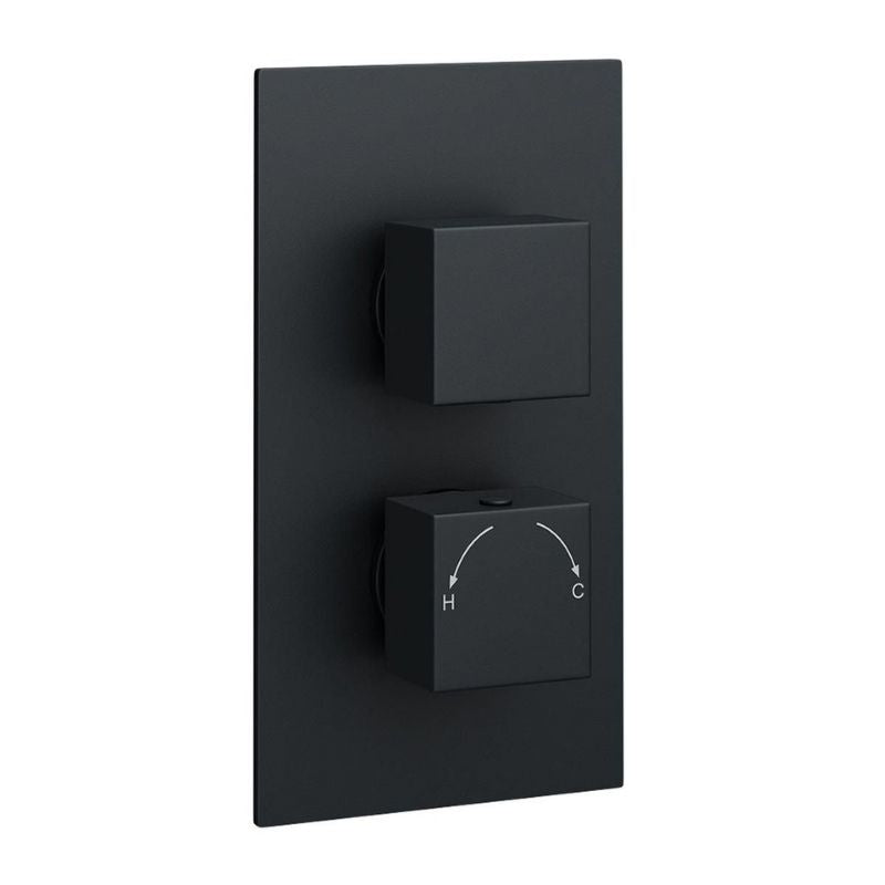 The Kartell Nero Round Concealed Thermostatic Shower Valve comes in a striking matt black finish, with rounded dual levers that turn on the hot & cold water function to the shower head. Complete with a diverter function. This shower valve comes with a dual square handle design with a modern back panel rectangle design.