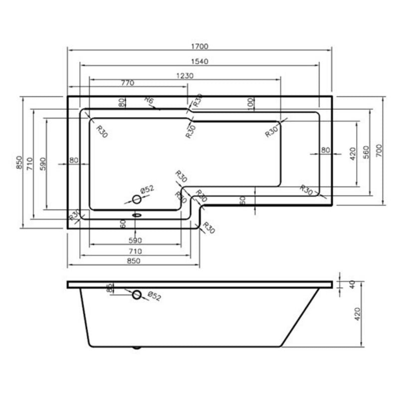 The Kartell Tetris 1700 L Shaped Left Hand Bath comes complete with Leg Sets. Contemporary style white bath with an easy to clean acrylic surface. Create a contemporary style bathroom with this L shaped bath tub, install for a savvy space saving bathroom interior. The 'L' Shape bath tub allows for a bigger space whilst showering, acting as practicality.