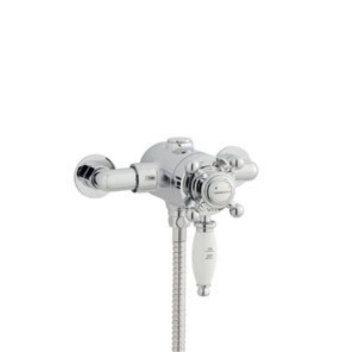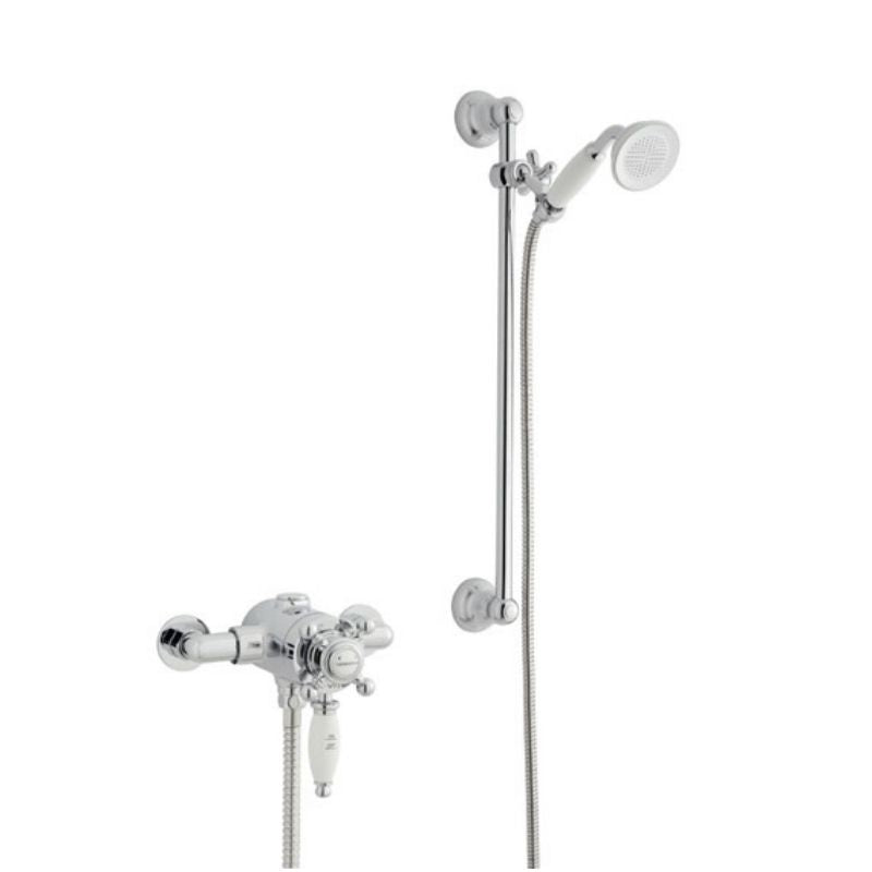 The Kartell Plan Exposed Thermostatic Shower Valve  comes in an elegant traditional modern design in a stunning chrome finish with. A modern design shower valve, with a curved lever handle and a cross head handle. This shower valve allows for easy use with its two controls for temperature control and water flow.