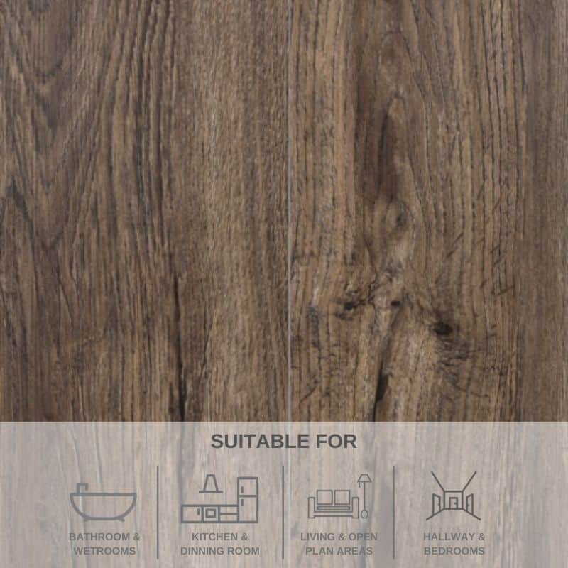 • 100% Water Proof making it ideal for high traffic areas such as kitchens, hallways and bathrooms