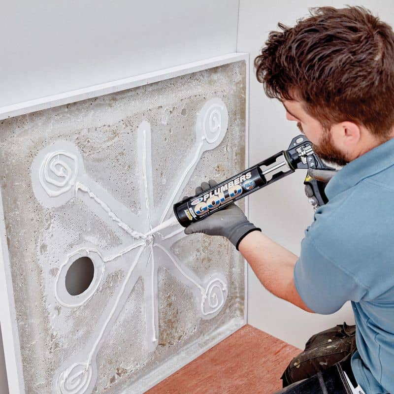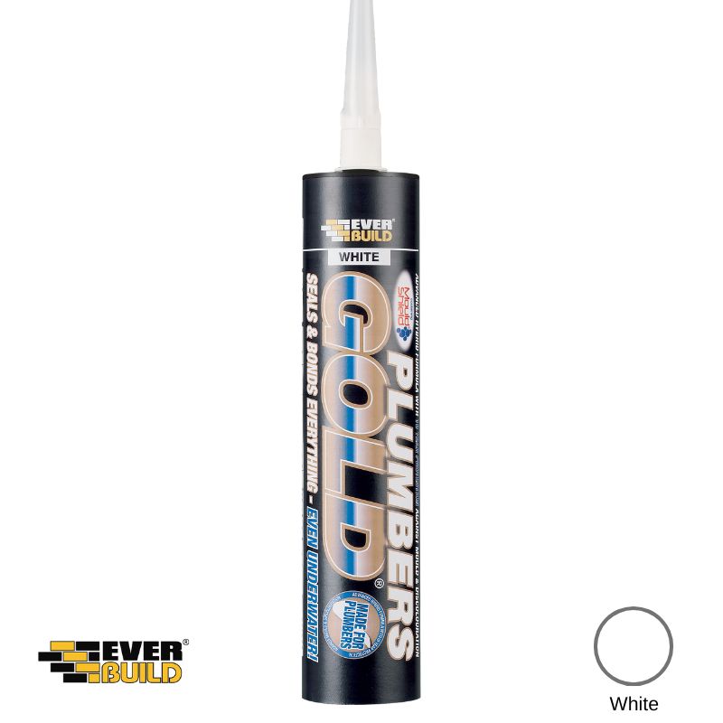Plumbers Gold White from Ever Build is a flawless primer-less adhesive with a mould shield silicone sealant, this adhesive can even be applied to wet surfaces and will even work when underwater! This adhesive has been specially formulated for the plumbing professional. A sealant that has been based on hybrid polymer technology offering outstanding adhesion to all bathroom, wet room, sanitary, kitchen and plumbing materials.