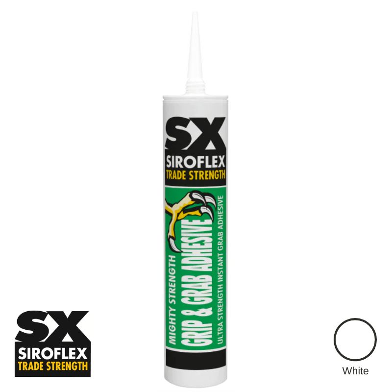 An incredible, instant grab adhesive based on hybrid technology. It has initial bond strength double that of most other grab adhesives and bonds to vertical surfaces without slippage, eliminating the need for secondary support in the majority of applications. Can even be used on damp or wet surfaces, is solvent free and cures quickly. It is water, frost and heat resistant from temperatures of -40°C to +90°C meaning it can be used externally as well as internally. An excellent alternative fixing adhesive which remains flexible, that replaces nails, screws and other mechanical fixings.