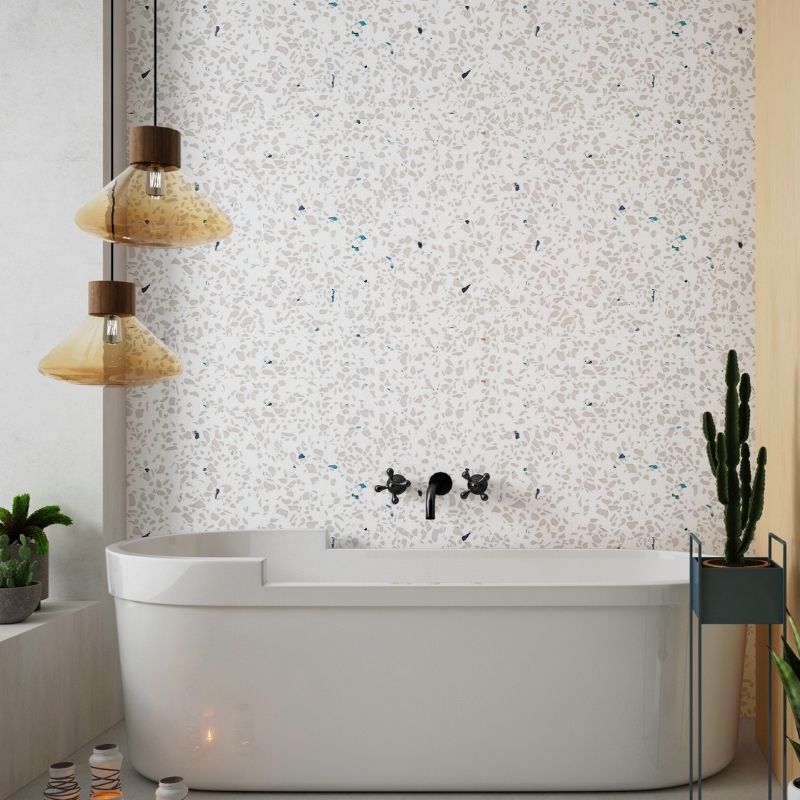 - Metallic Sparkles Scattered On White Shower Panel With Granite Effect Pattern