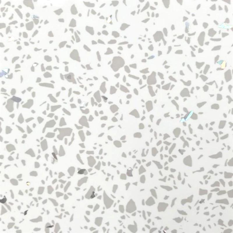 Metallic Sparkles Scattered On White Shower Panel With Granite Effect Pattern and Gloss Finish