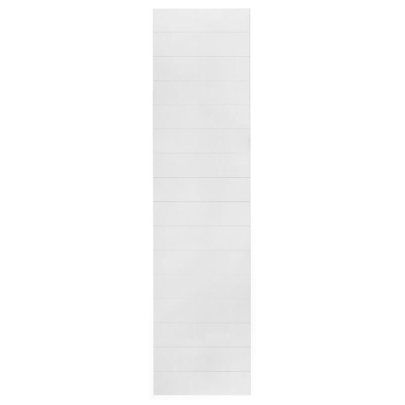 White Snow from the Berry Alloc Wall & Water Collection has a high gloss finish, and the individual tile size on a full length panel is 600 x 150mm. Create a beautiful sanctuary with this neutral snow white plywood wet wall panel. Give your bathroom an instant relaxed spa interior. Use colour to create an atmosphere of warmth, well-being and cosiness. All you need to feel at peace and enjoy the simple pleasures. The feeling of soap on smooth skin, the steam of hot shower wrapping your body like a blanket.